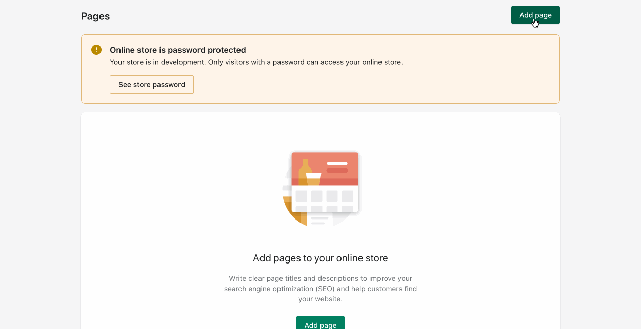 From the Shopify administration area select the pages section from the left navigation. You will see a list of pages or be prompted to create a new one if you don't have any yet.
